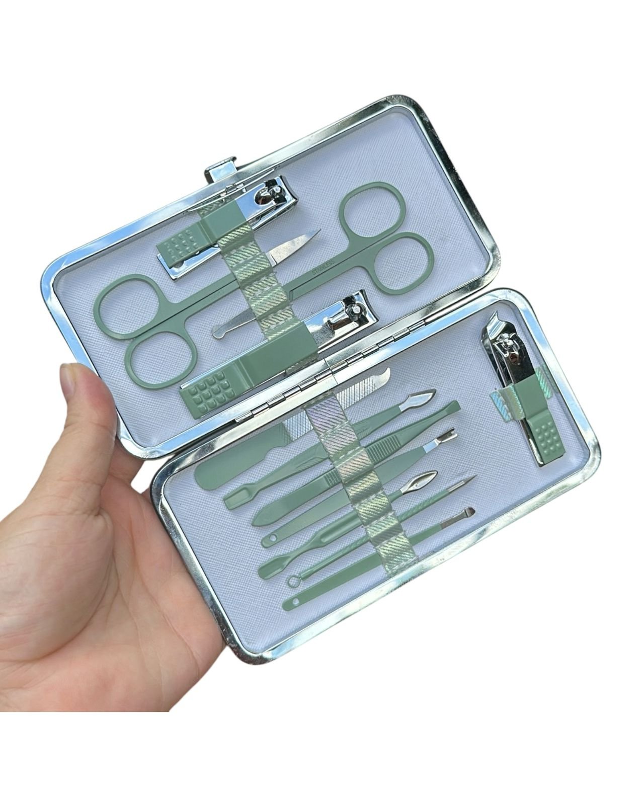 Set completo Manicura y Pedicura, con 12 pcs, para el cuidados de tus uñas, todo lo que necesitas en un único set, de material acero inoxidable